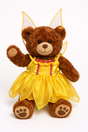LET'S FLY AWAY! This beautiful yellow satin dress features frills, organza and pink lace detailing. The handkerchief hem and shiny white wings mean busy fairies can fly off in a hurry after frolicking about! This is the perfect addition to any Teddy Tastic bear plus makes a great gift for any occasion!